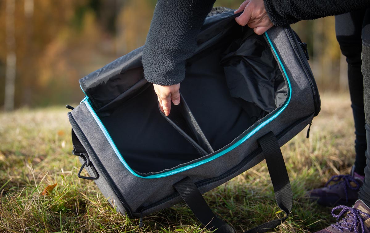A smaller yet impressively spacious travel and training bag that’s perfect for weekend trips, competitions, training sessions, seminars or shows – whether you’re traveling with dogs or without.