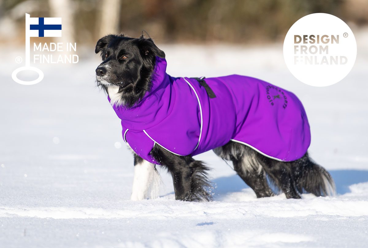 The ProWarmer dog jacket design from Joy of Dog Spots is protected, and the jacket has been awarded the Key Flag symbol and the Design from Finland mark as evidence of its Finnish manufacture, design excellence and sustainability.