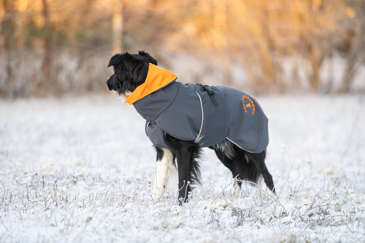 The jacket’s design is also perfect for sports: tailored to fit dogs of all shapes and sizes, covering all the big muscles and staying in place even at full speed, while still allowing complete freedom of movement. The soft materials are nice and stretchy, so your dog can move freely. The high multipurpose collar can be worn up to provide protection from rain and wind, folded down to the length of your choice or worn as a hood to keep your dog’s ears covered.