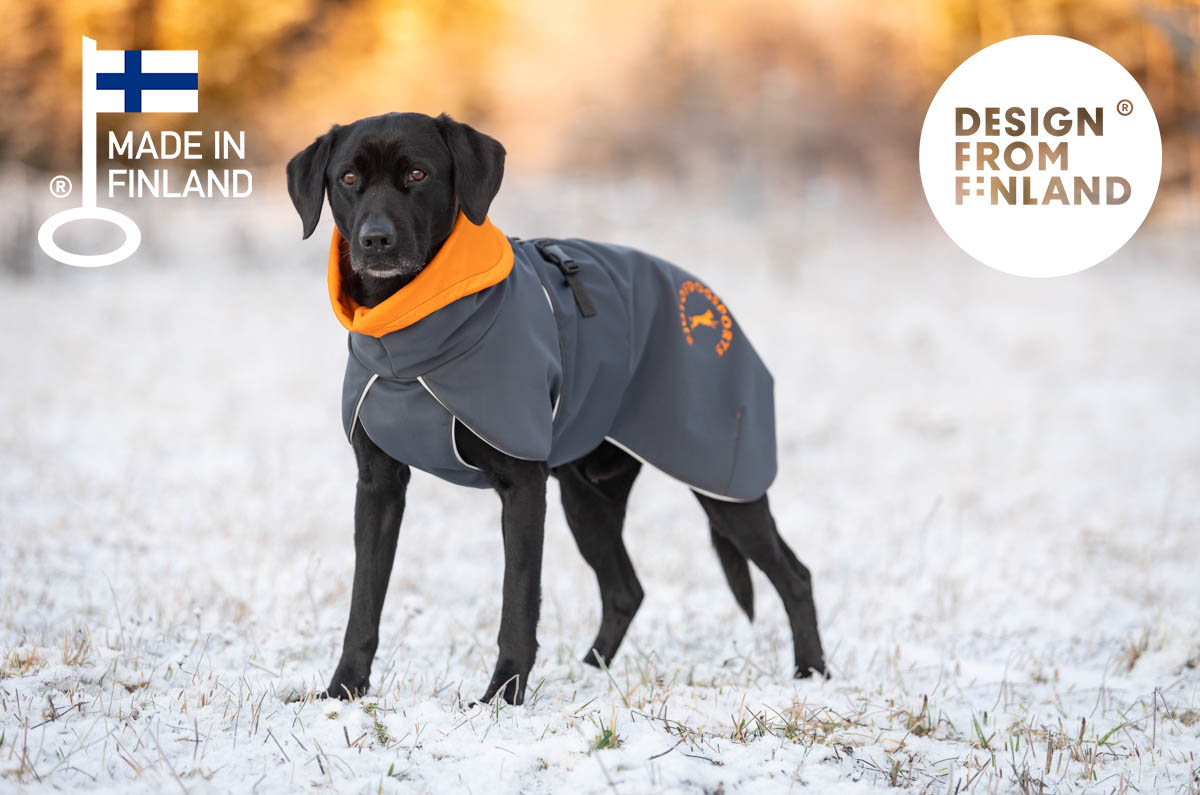 The SportWarmer dog jacket design from Joy of Dog Spots is protected, and the jacket has been awarded the Key Flag symbol and the Design from Finland mark as evidence of its Finnish manufacture, design excellence and sustainability.