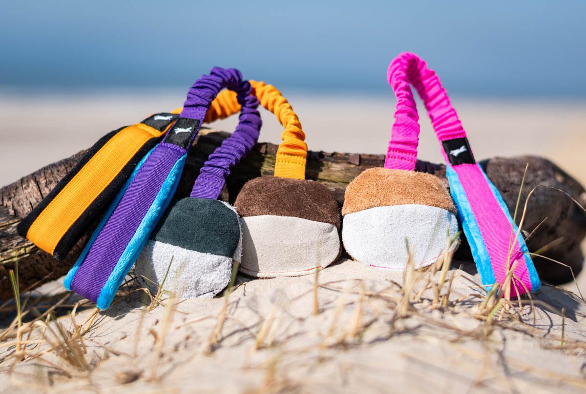 These toys are handmade in Finland using genuine leather recovered from a local furniture factory. The smell of the genuine materials, wool and leather, is tempting to dogs. The toys are soft, perfect for playing with and training your dog.