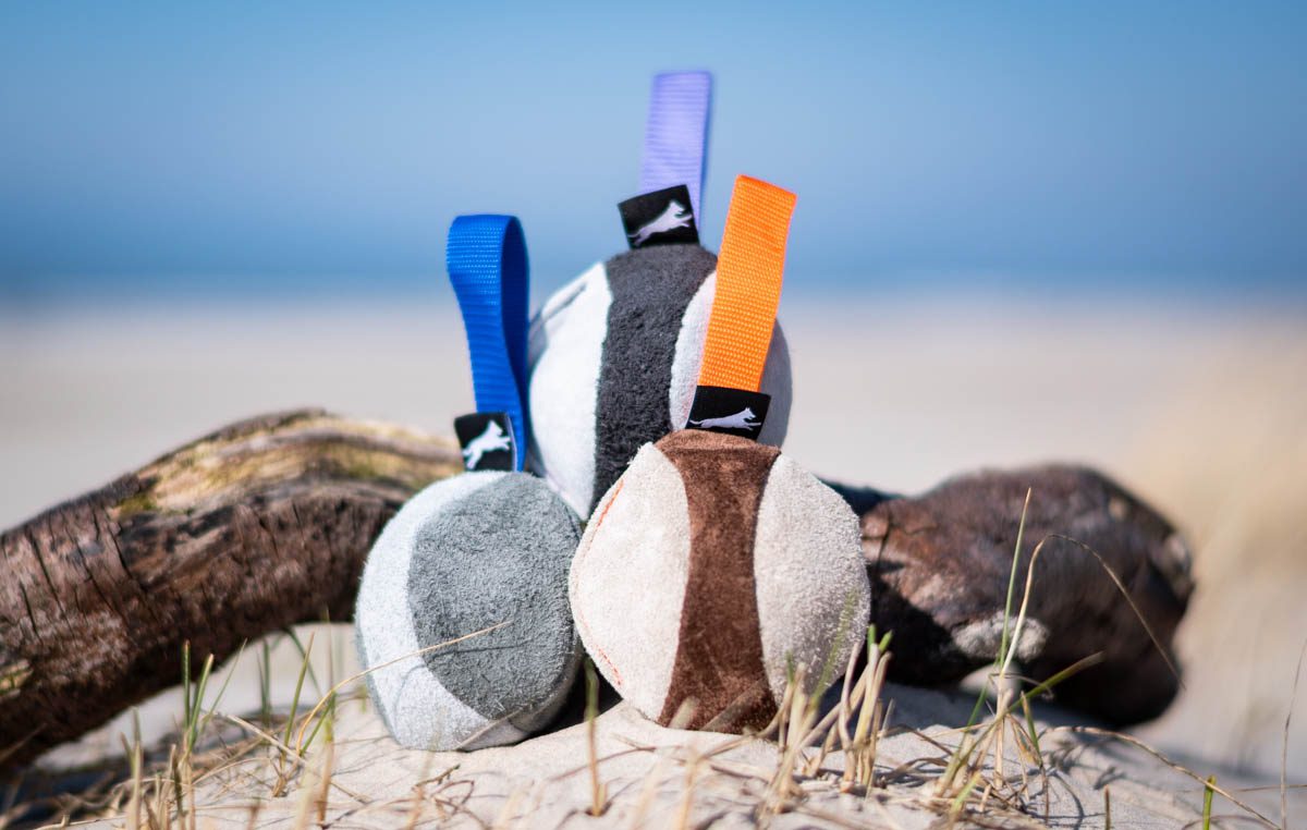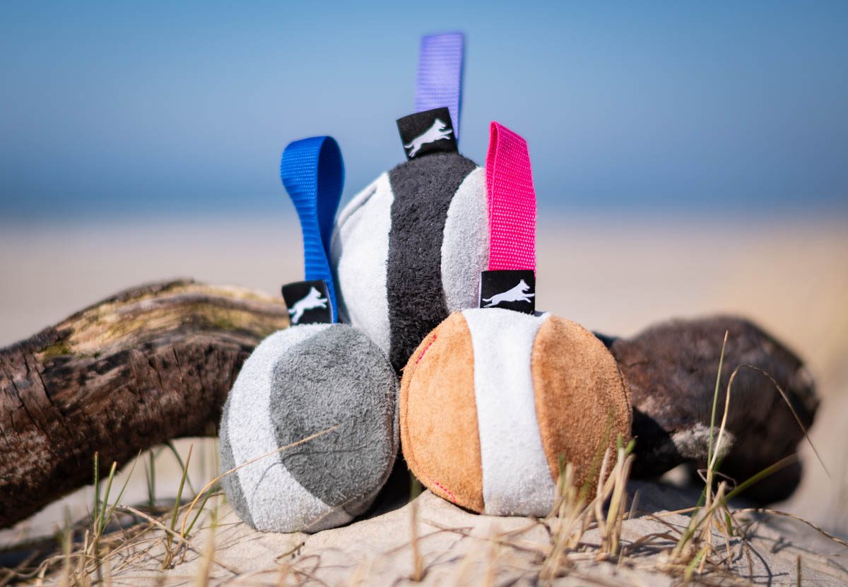These toys are handmade in Finland using genuine leather recovered from a local furniture factory. The smell of the genuine materials, wool and leather, is tempting to dogs. The toys are soft, perfect for playing with and training your dog.